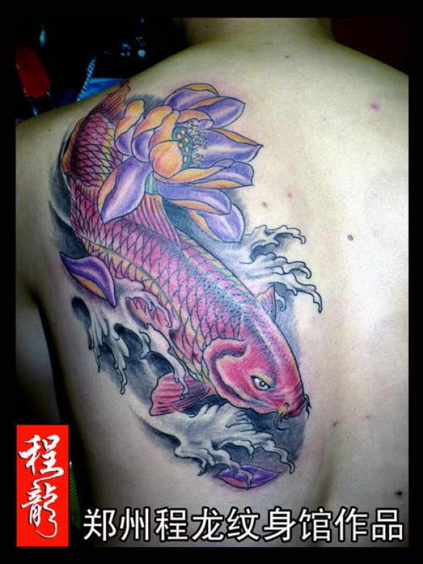 满背鲤鱼莲花纹身图案_鲤鱼纹身图案大全_纹身图吧