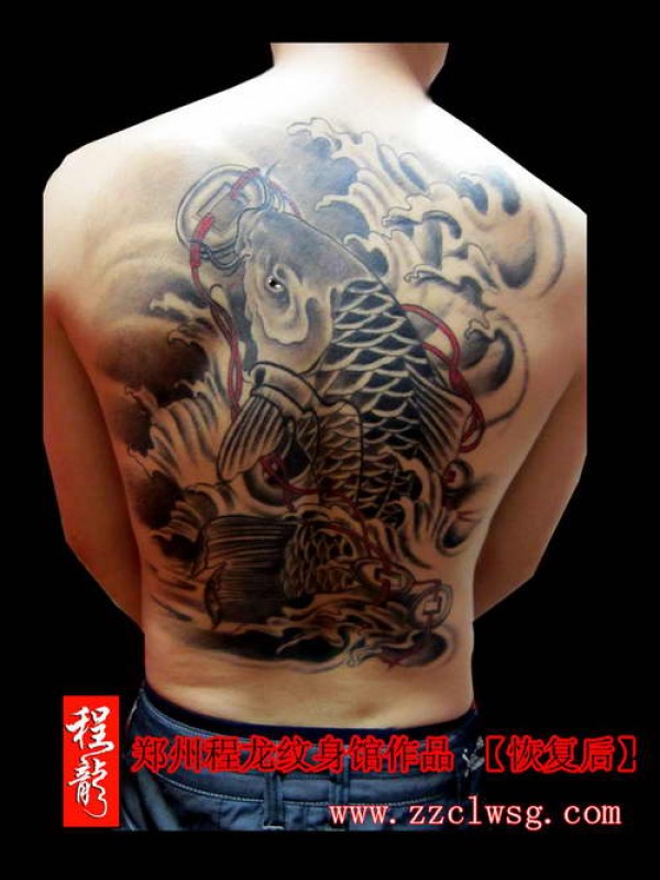郑州纹身 程龙纹身馆作品 【后背招财鲤鱼】_鲤鱼纹身图案大全_纹身图吧