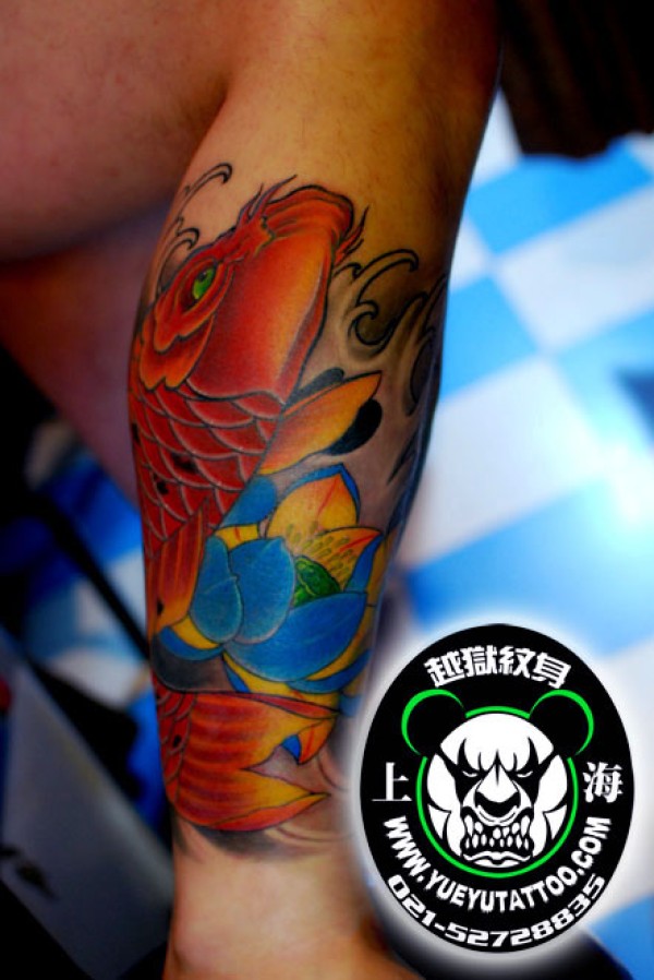 腿部莲花鲤鱼纹身图案_鲤鱼纹身图案大全_纹身图吧