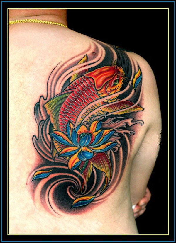 一款传统时尚的肩胛骨鲤鱼纹身图案_鲤鱼纹身图案大全_纹身图吧