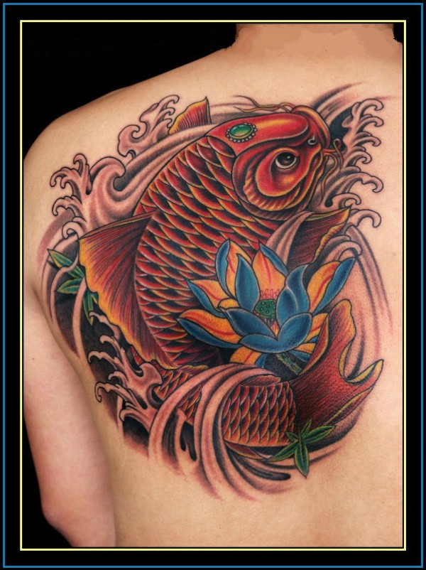 满背鲤鱼莲花纹身图案_鲤鱼纹身图案大全_纹身图吧