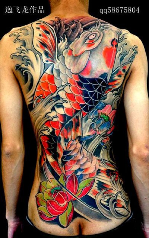 分享一款时尚霸气的满背鲤鱼纹身图案_鲤鱼纹身图案大全_纹身图吧