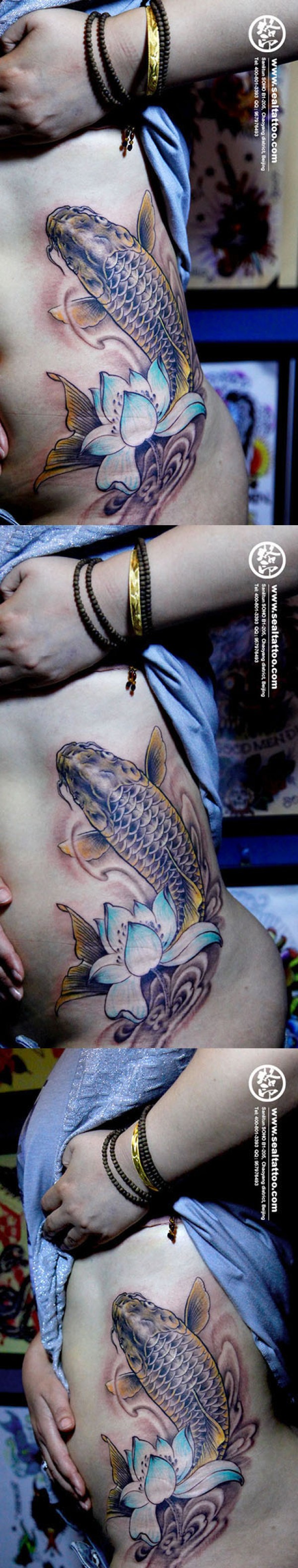 侧腰鲤鱼莲花纹身_鲤鱼纹身图案大全_纹身图吧