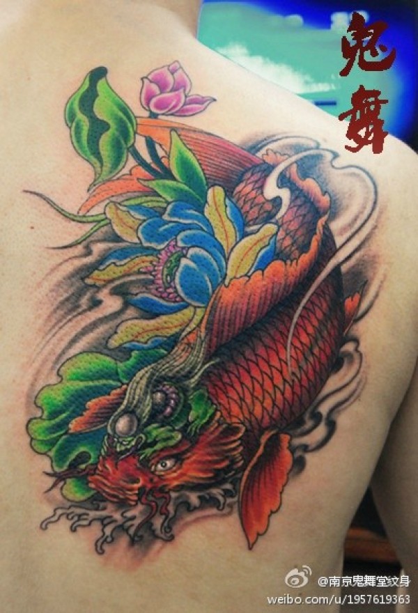 满背鲤鱼莲花纹身图案_鲤鱼纹身图案大全_纹身图吧