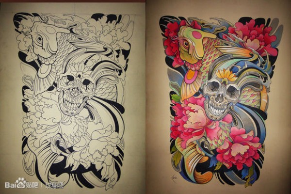 超帅很酷的满背骷髅鲤鱼纹身图案_鲤鱼纹身图案大全_纹身图吧