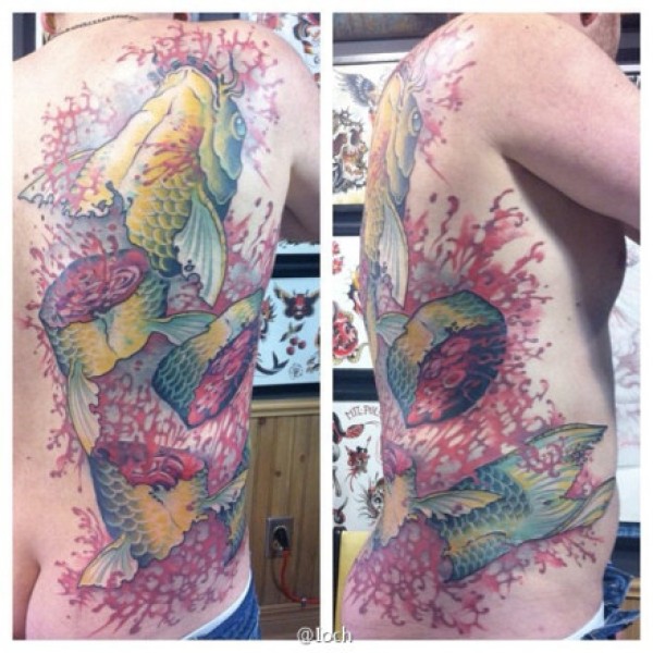 满背鲤鱼莲花纹身图案_鲤鱼纹身图案大全_纹身图吧