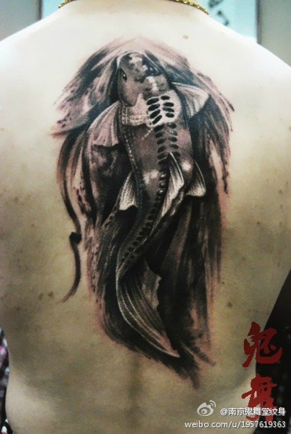 男生后背经典的写意鲤鱼纹身图案_鲤鱼纹身图案大全_纹身图吧