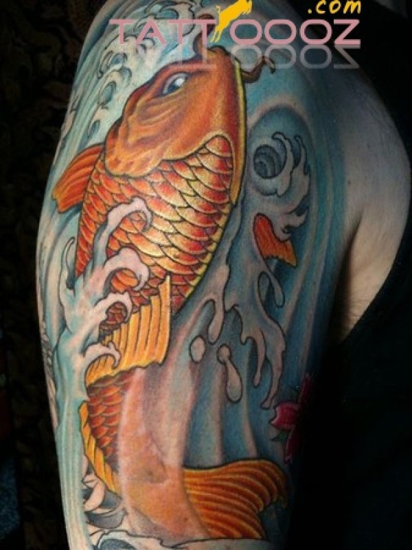 分享一款大臂鲤鱼纹身图案_鲤鱼纹身图案大全_纹身图吧