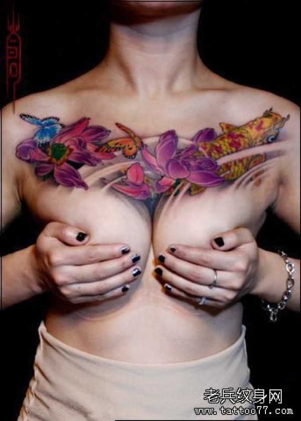 推荐一款胸前鲤鱼莲花纹身图案_鲤鱼纹身图案大全_纹身图吧