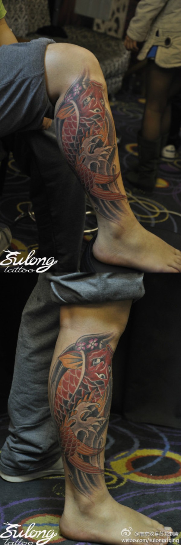腿部经典的一款三只眼的鲤鱼纹身图案_鲤鱼纹身图案大全_纹身图吧