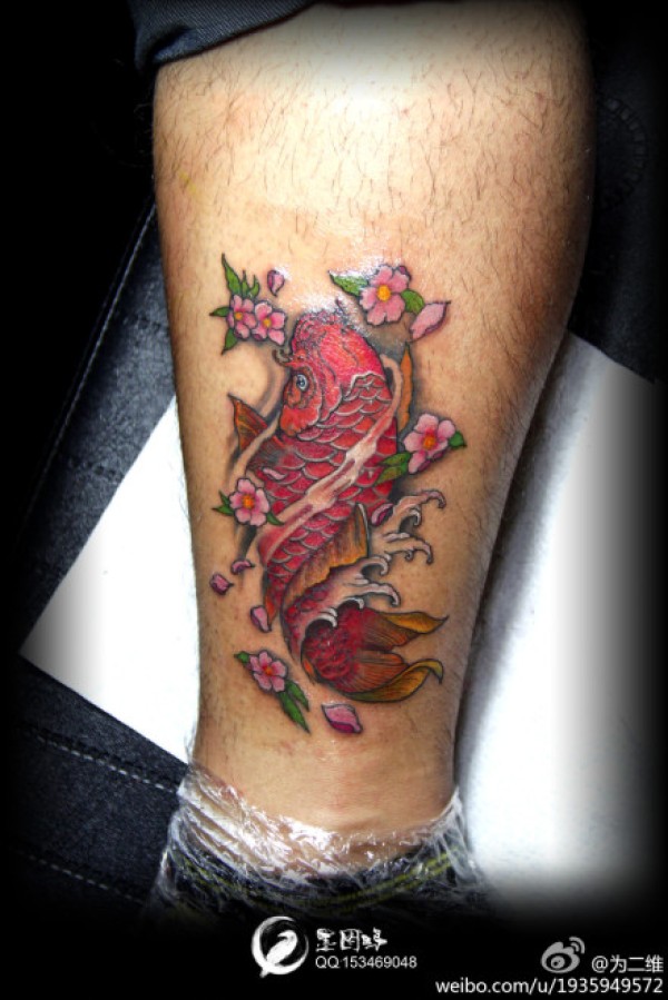腿部潮流经典的传统鲤鱼纹身图案_鲤鱼纹身图案大全_纹身图吧