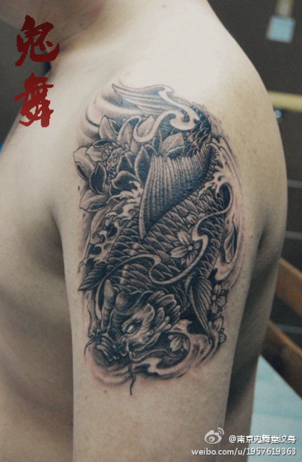 男人手臂经典时尚的黑灰鲤鱼纹身图案_鲤鱼纹身图案大全_纹身图吧