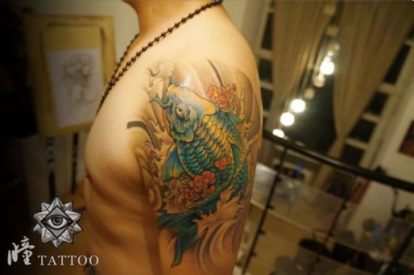手臂漂亮时尚的彩色鲤鱼纹身图案_鲤鱼纹身图案大全_纹身图吧