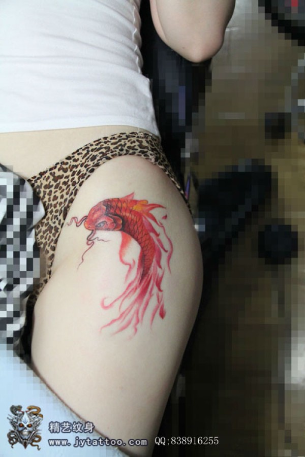 美女腿部彩色小鲤鱼纹身图案_鲤鱼纹身图案大全_纹身图吧