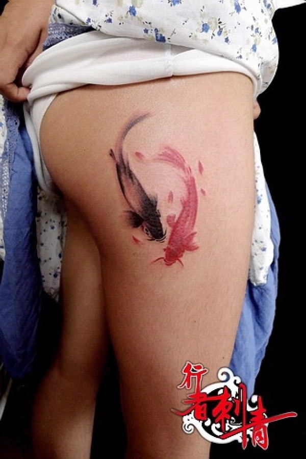 女人腿部时尚漂亮的水墨鲤鱼纹身图案_鲤鱼纹身图案大全_纹身图吧