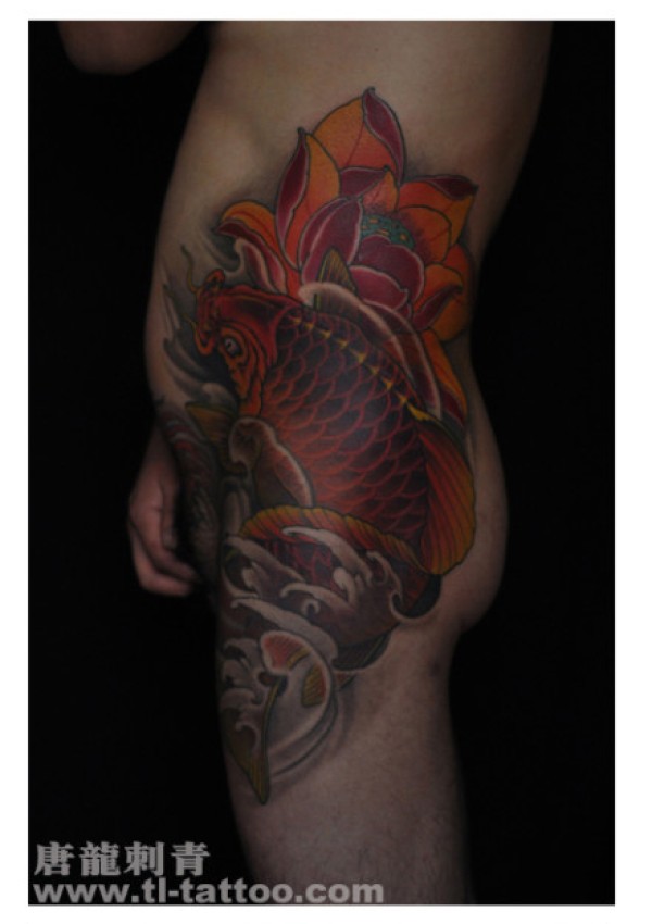 侧腰鲤鱼莲花纹身_鲤鱼纹身图案大全_纹身图吧