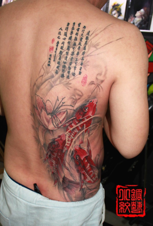 满背鲤鱼莲花纹身图案_鲤鱼纹身图案大全_纹身图吧