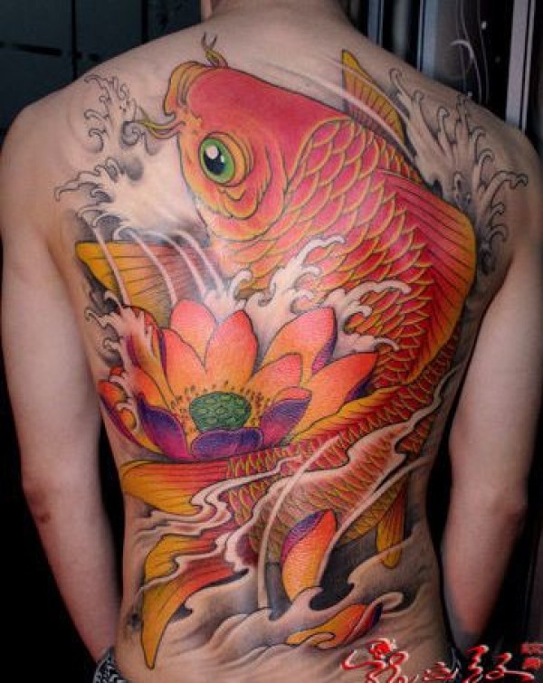 漂亮的彩色满背鲤鱼纹身图案_鲤鱼纹身图案大全_纹身图吧