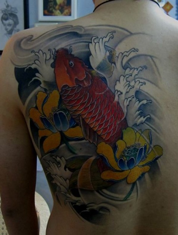 满背鲤鱼莲花纹身图案_鲤鱼纹身图案大全_纹身图吧