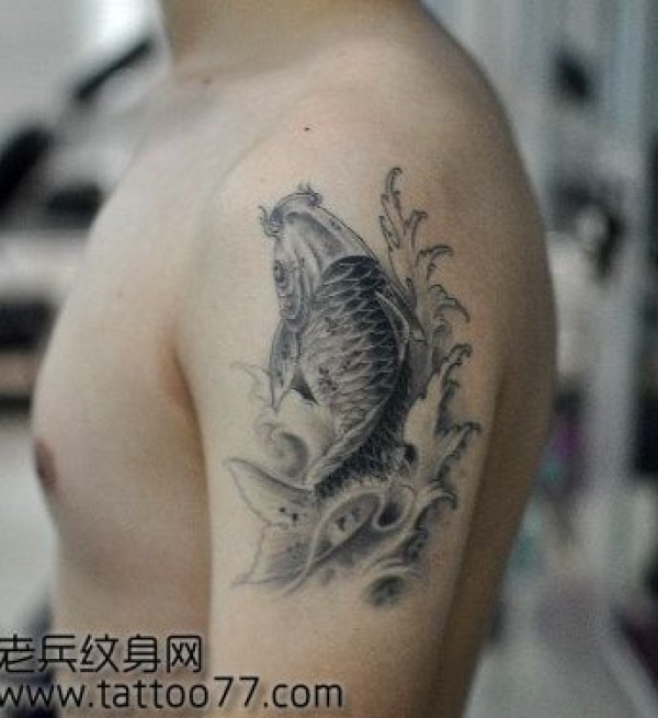 手臂一款黑白鲤鱼纹身图案_鲤鱼纹身图案大全_纹身图吧
