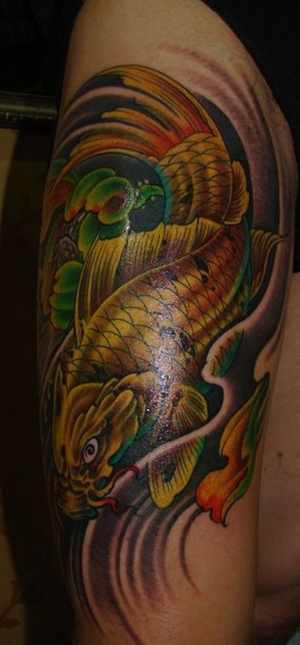 腿部精美好看的彩色鲤鱼纹身图案_鲤鱼纹身图案大全_纹身图吧