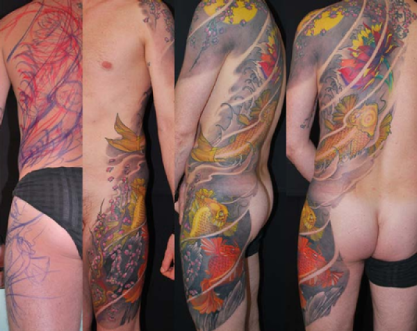 满背鲤鱼莲花纹身图案_鲤鱼纹身图案大全_纹身图吧