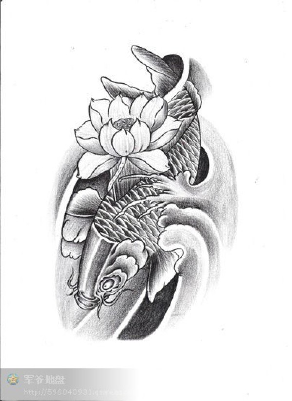 鲤鱼莲花纹身图案手稿_鲤鱼纹身图案大全_纹身图吧
