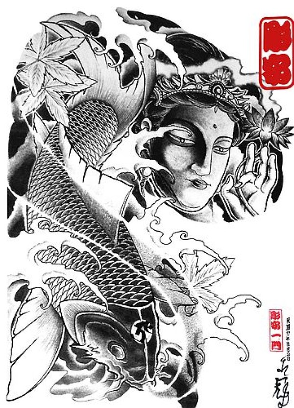 武汉专业文身店半胛鲤鱼观间观音纹身图案图_鲤鱼纹身图案大全_纹身图吧