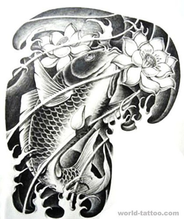 鲤鱼纹身图案大全半胛鲤鱼莲花纹身图案图片_鲤鱼纹身图案大全_纹身图吧