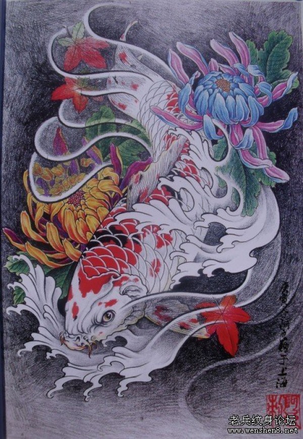 鲤鱼菊花纹身图案纹身图片武汉纹身店为你提_鲤鱼纹身图案大全_纹身图吧