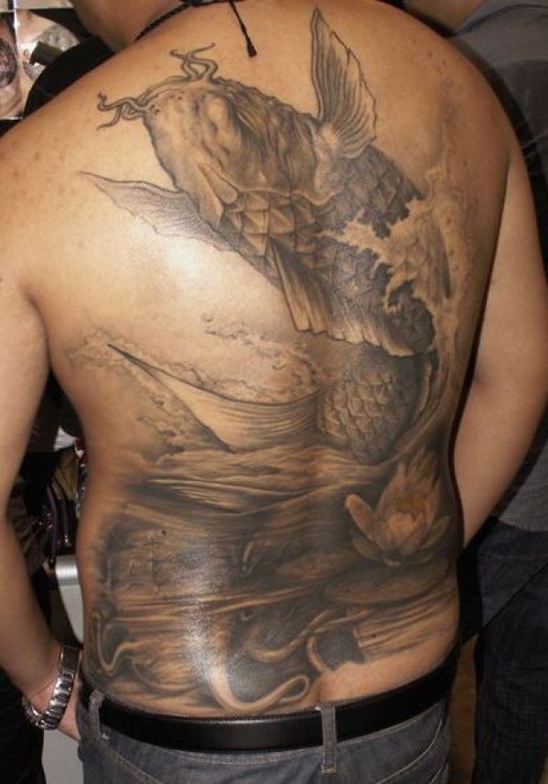满背鲤鱼莲花纹身图案_鲤鱼纹身图案大全_纹身图吧