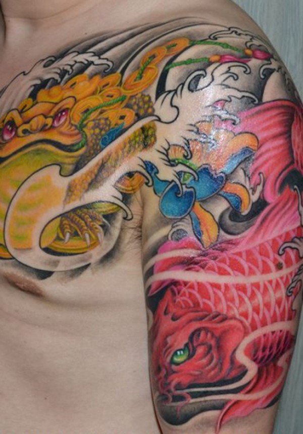 半胛金蝉鲤鱼纹身_鲤鱼纹身图案大全_纹身图吧