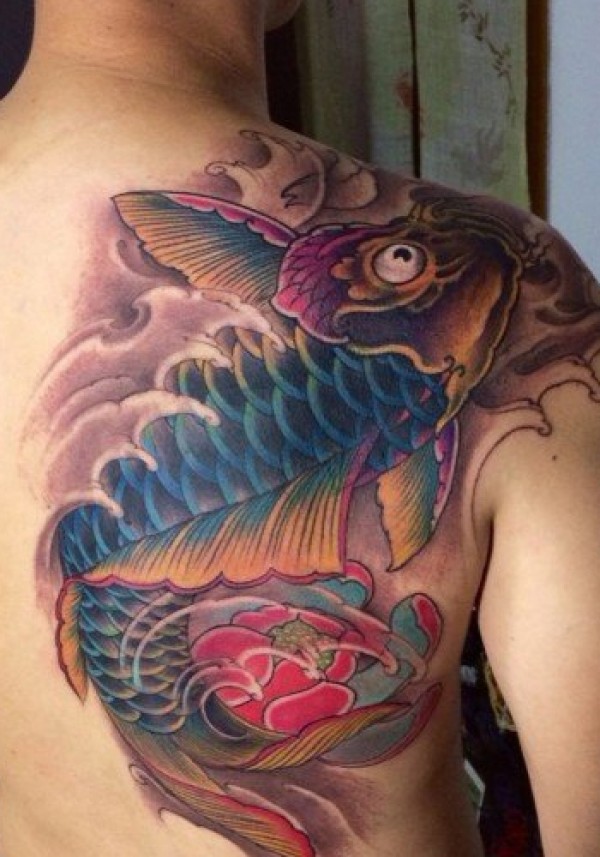 满背鲤鱼莲花纹身图案_鲤鱼纹身图案大全_纹身图吧