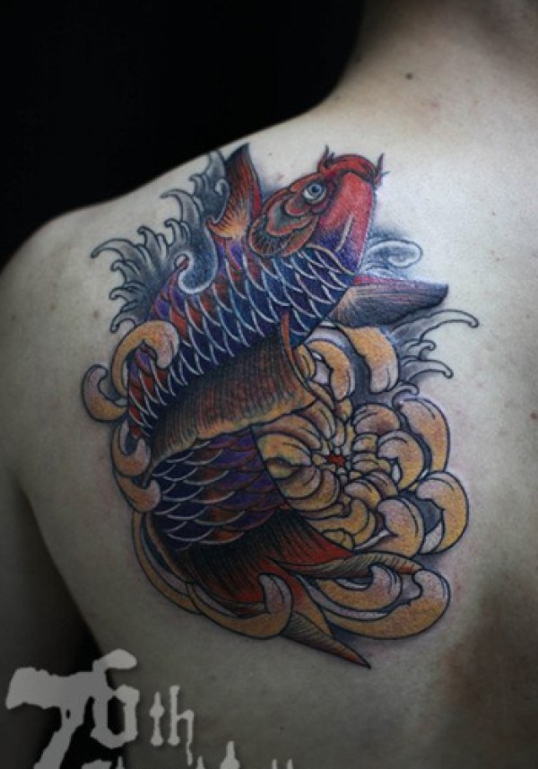 鲤鱼菊花纹身图案_鲤鱼纹身图案大全_纹身图吧