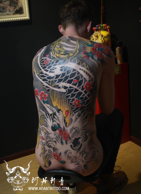 满背鲤鱼纹身_鲤鱼纹身图案大全_纹身图吧