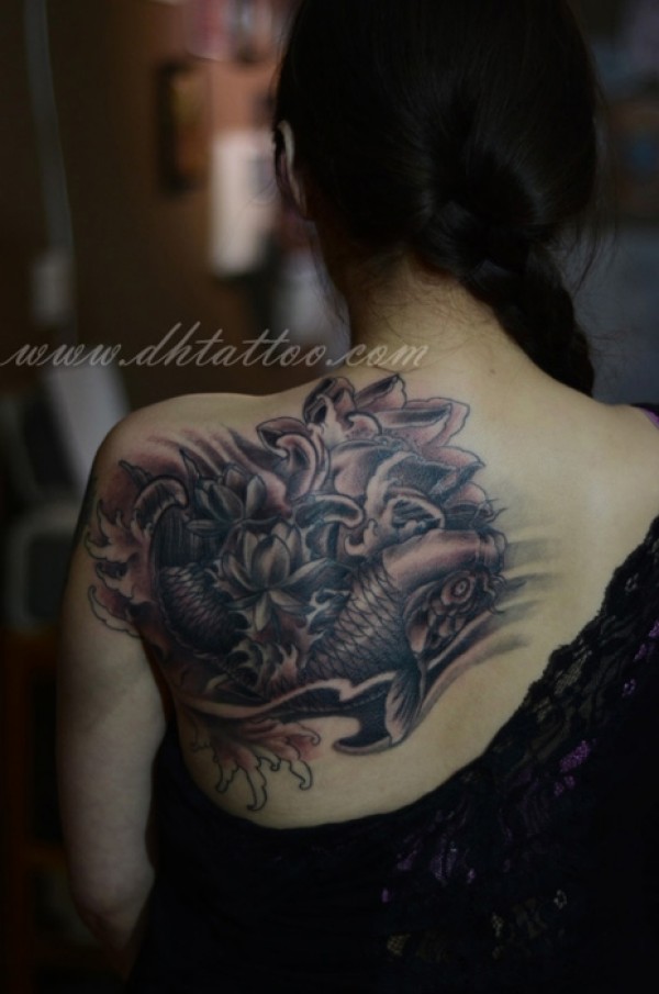 满背鲤鱼莲花纹身图案_鲤鱼纹身图案大全_纹身图吧