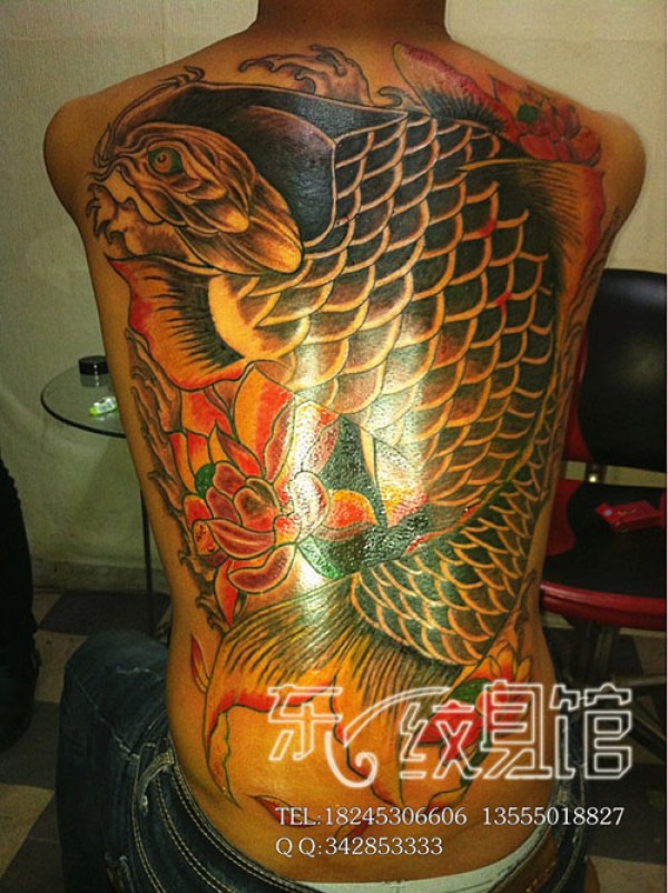 满背鲤鱼纹身_鲤鱼纹身图案大全_纹身图吧
