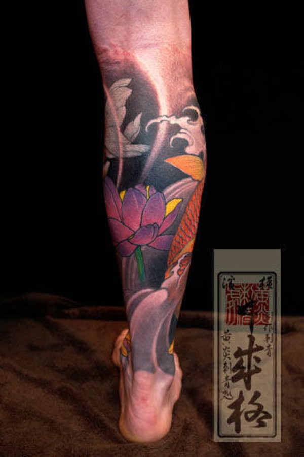 包小腿莲花鲤鱼_鲤鱼纹身图案大全_纹身图吧