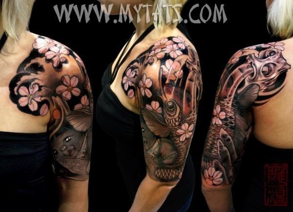 鲤鱼樱花半胛_鲤鱼纹身图案大全_纹身图吧