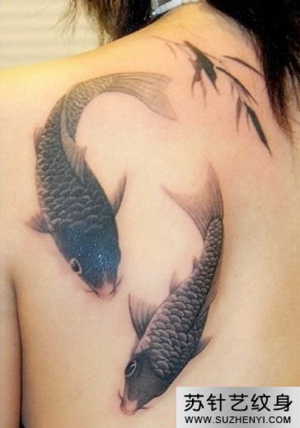 女生肩部鲤鱼纹身_鲤鱼纹身图案大全_纹身图吧