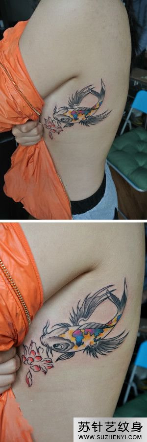 侧腰锦鲤小纹身_鲤鱼纹身图案大全_纹身图吧
