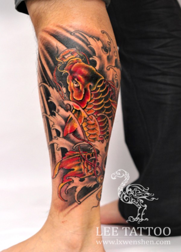 小腿鲤鱼纹身_鲤鱼纹身图案大全_纹身图吧