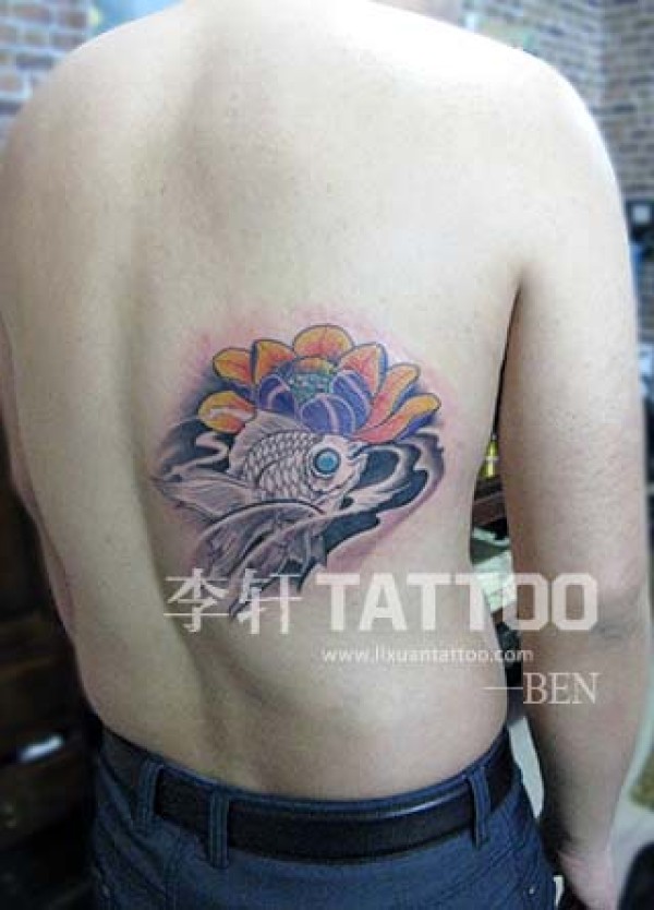 满背鲤鱼莲花纹身图案_鲤鱼纹身图案大全_纹身图吧