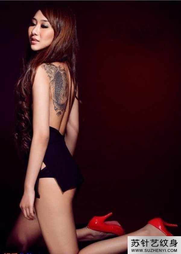 田子琳后背霸气鲤鱼性感纹身_鲤鱼纹身图案大全_纹身图吧