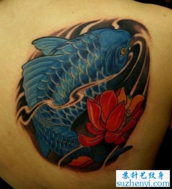 满背鲤鱼莲花纹身图案_鲤鱼纹身图案大全_纹身图吧