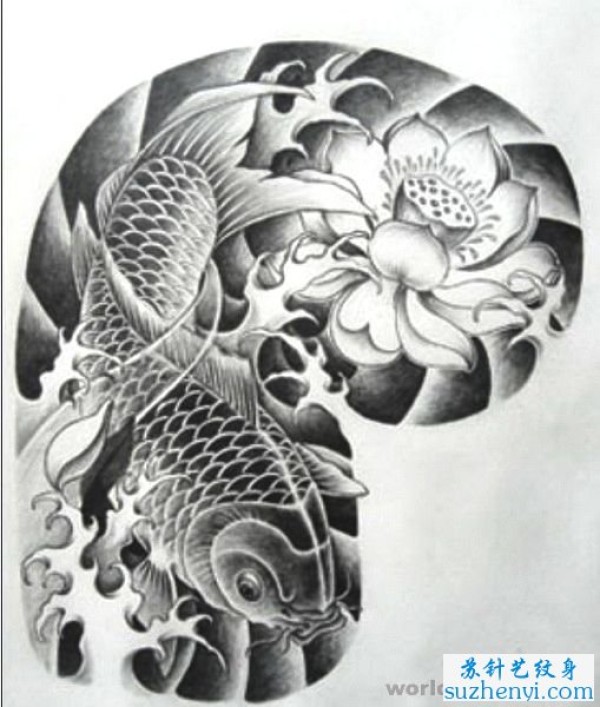 黑白鲤鱼纹身图案_鲤鱼纹身图案大全_纹身图吧