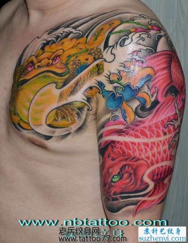 半胛金蝉鲤鱼纹身_鲤鱼纹身图案大全_纹身图吧