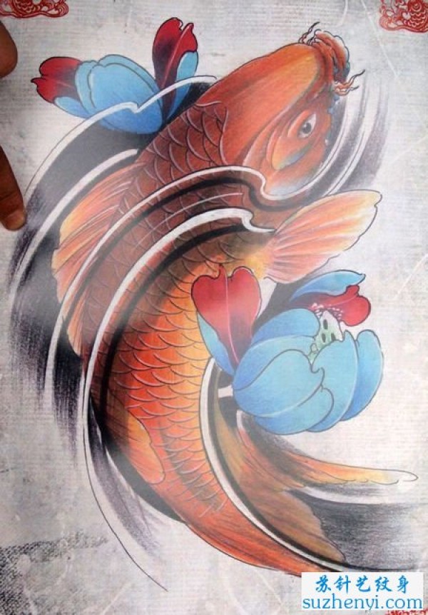 荷花彩色鲤鱼纹身_鲤鱼纹身图案大全_纹身图吧