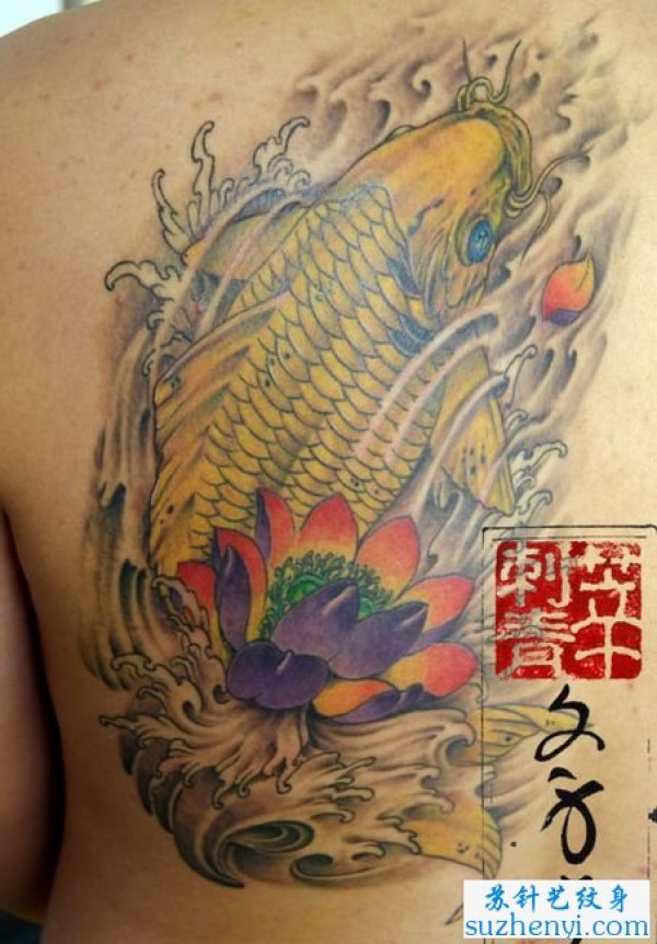 满背鲤鱼莲花纹身图案_鲤鱼纹身图案大全_纹身图吧