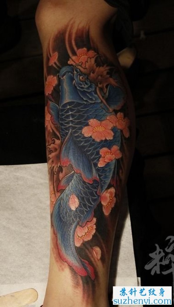 樱花鲤鱼纹身_鲤鱼纹身图案大全_纹身图吧